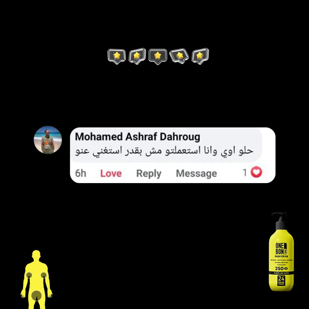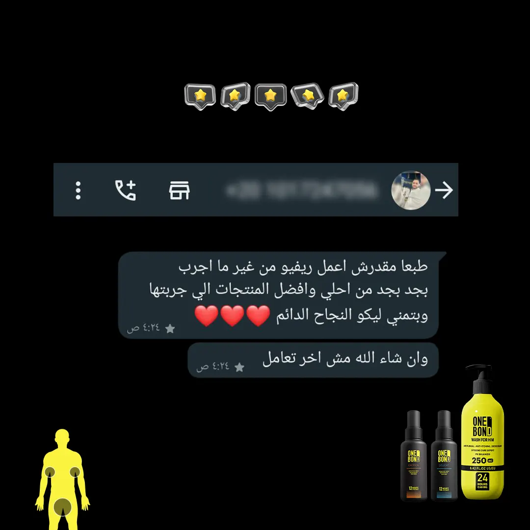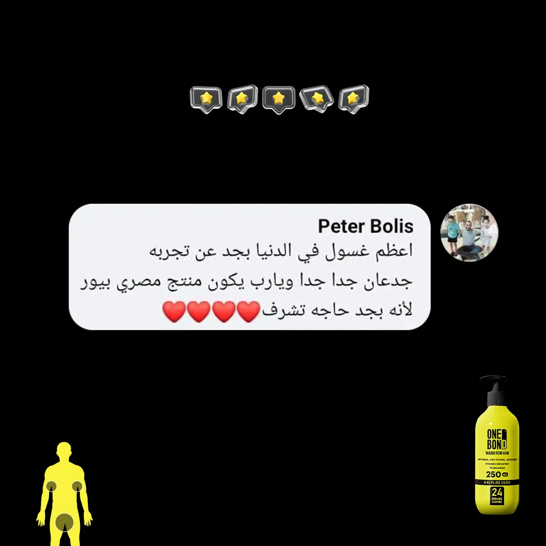 الصابون والشاور جيل مليان مواد كيمائية كاوية للبشرة ومضِّر جداً للمناطق الحساسة غسول ONE BOND وان بوند أول غسول رجالي للمناطق الحساسة للرجال بديل الصابون والشاور جيل يقضي على الفطريات والبكتيريا الضارة لانه يحافظ على الـ Ph المناسبة للمنطقة الحساسة يقضي على الالتهابات والتسلخات ويمنع العرق والروائح الكريهة ويمنع الأحساس بالحكة و الهرش ويحمي البشرة من الجفاف ويرطبها جيدا.